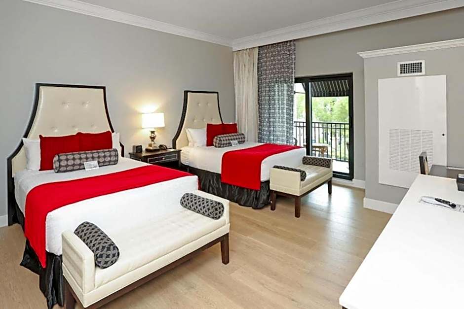 The spacious, 400-square-foot guestroom includes doors that open onto either a pool or courtyard. An en suite safety deposit box, coffee-making facilities, and a hairdryer are provided. Additional amenities include ironing facilities and plush terry robes.
